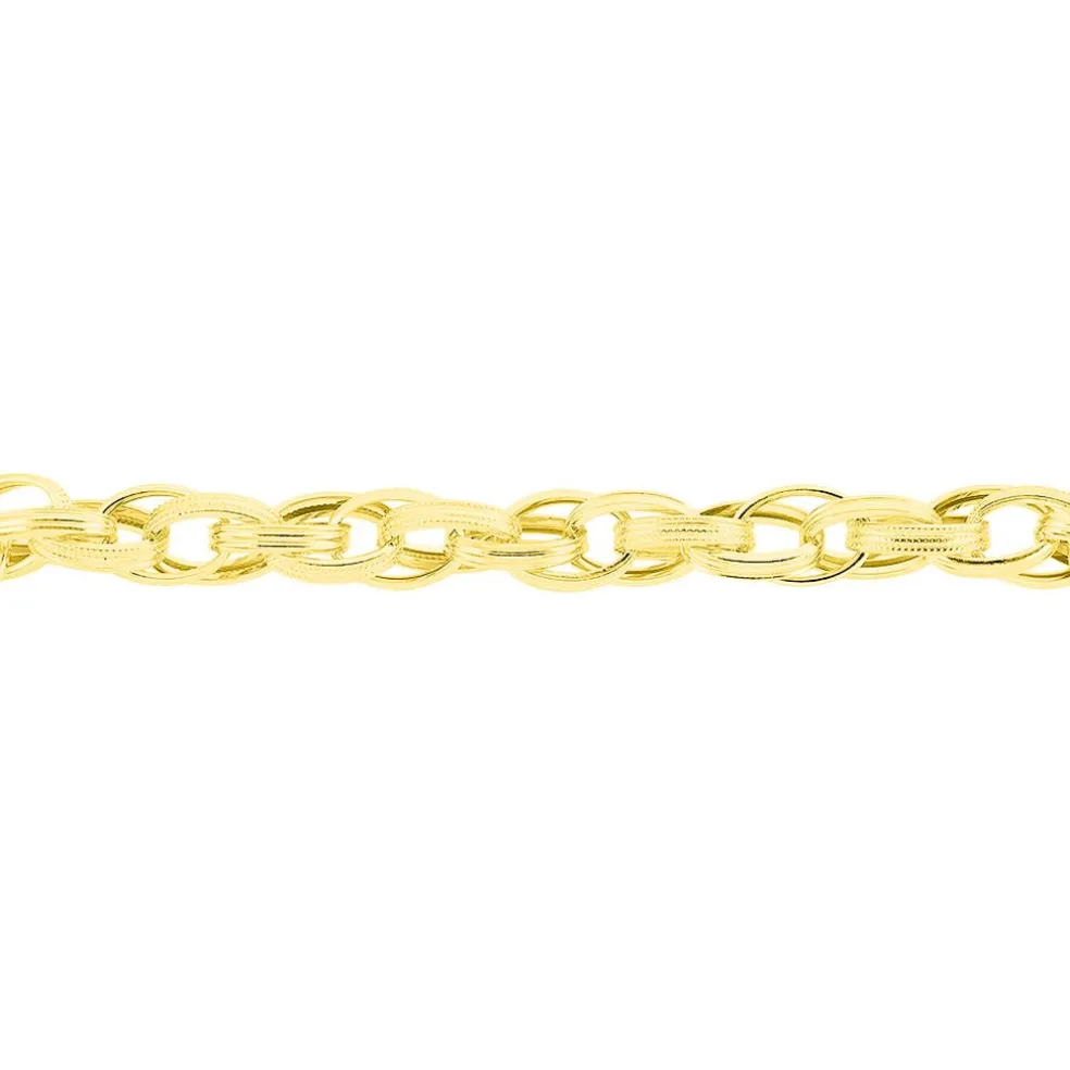 Bracelet Or Jaune 375/1000 Maillons Ovales Fil Plat Lisses Et Diamantes 8.3mm 19cm