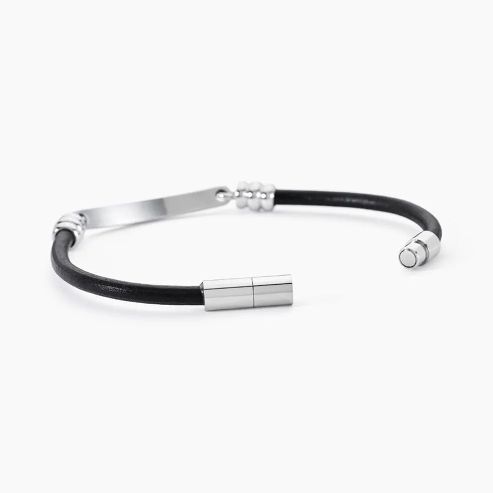 Bracelet Acier Inoxydable Blanc Cuir De Vache Noir Message Papa Cool 21cm