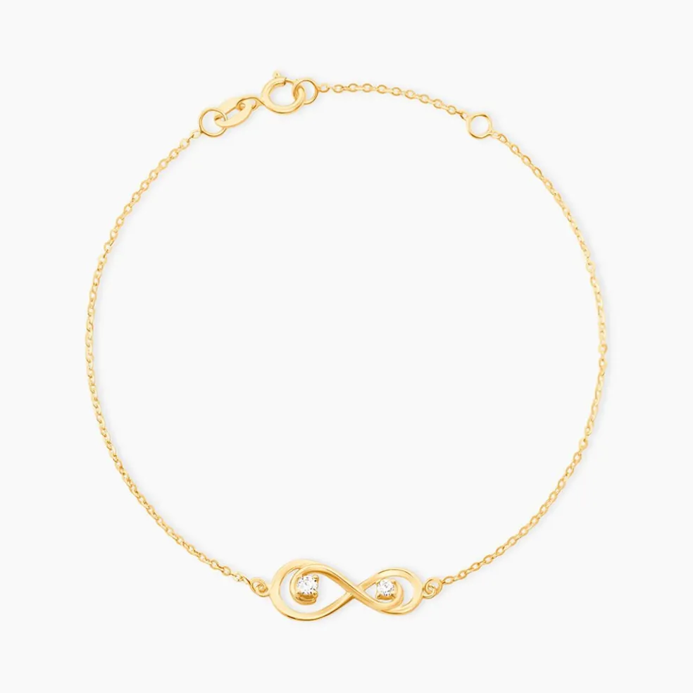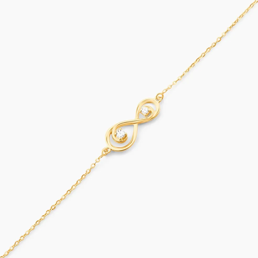 Bracelet Or Jaune 375/1000 Forme Infini Deux Oxydes Blancs 18cm