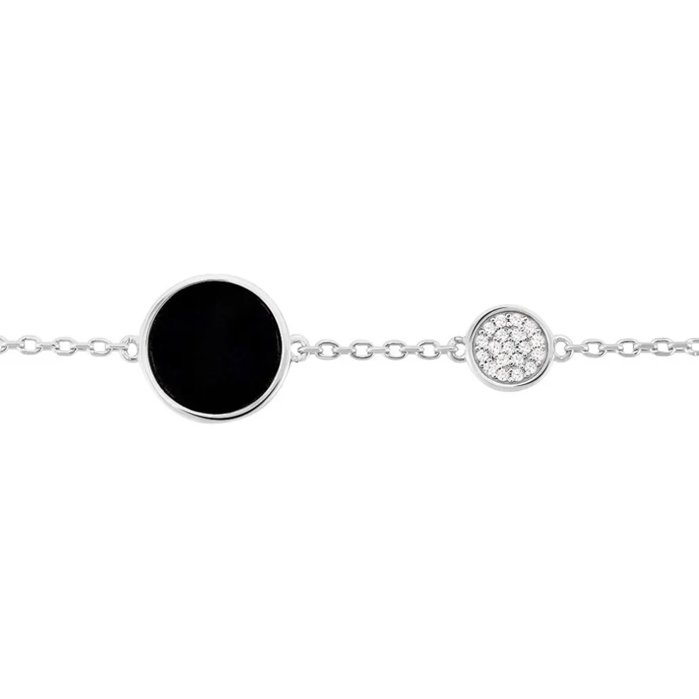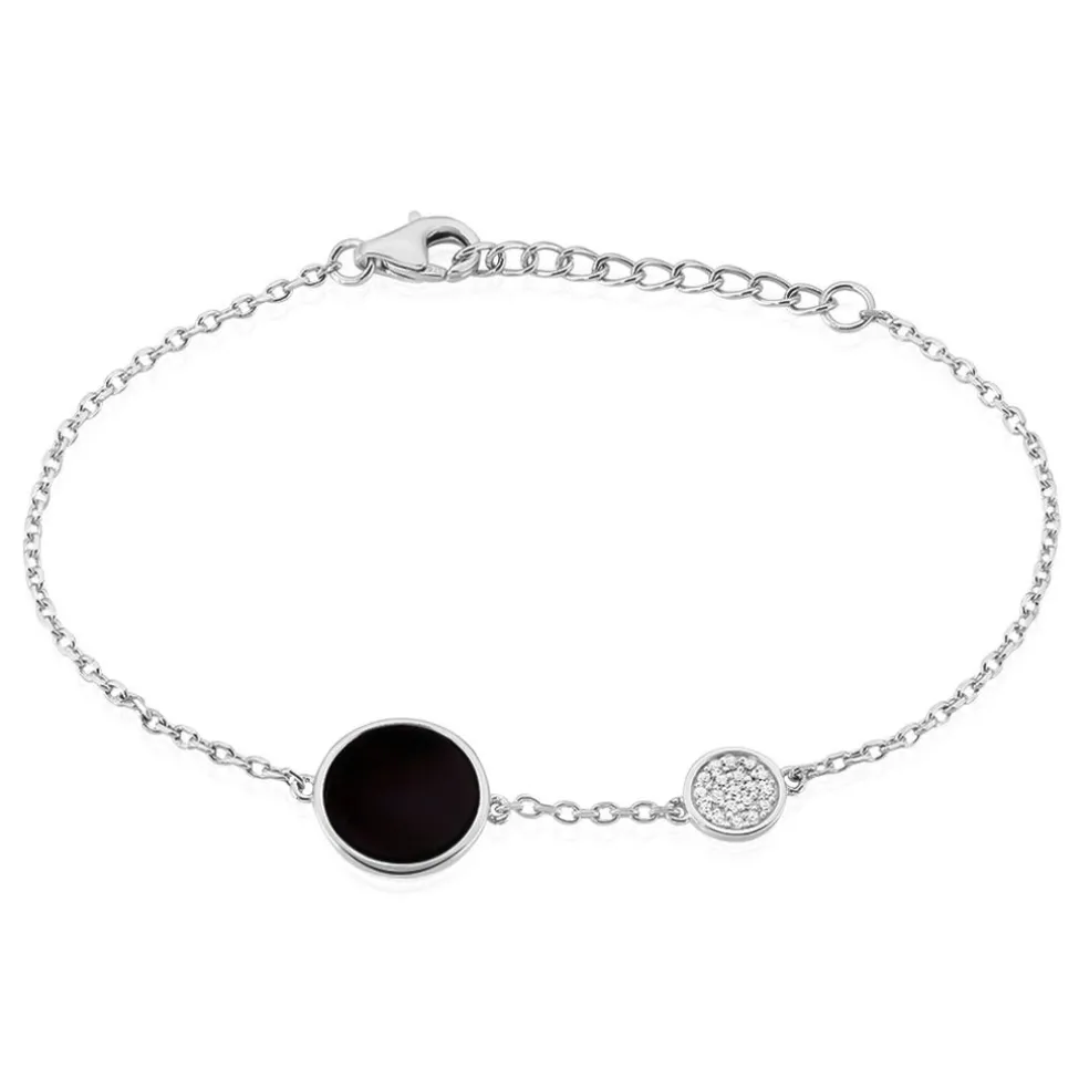 Bracelet Argent 925/1000 Ceramiques Noires Et Oxyde 19cm