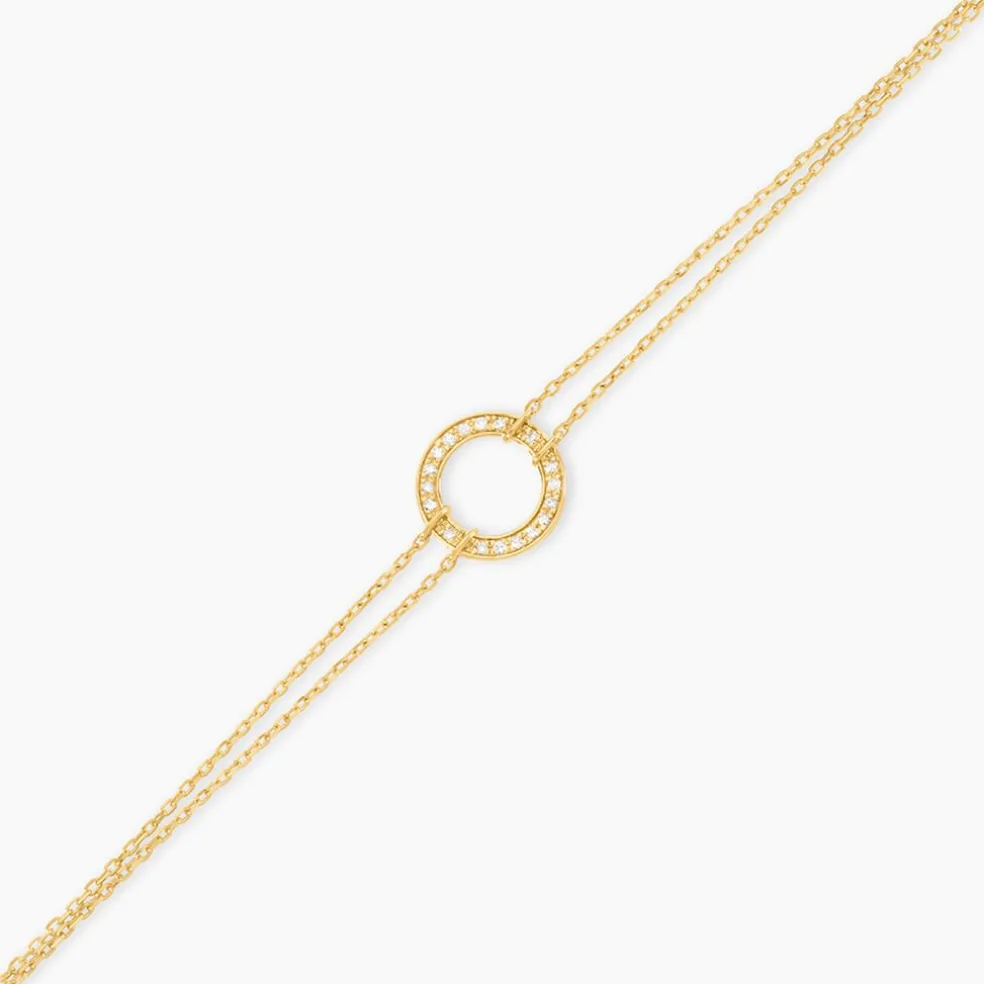 Bracelet Or Jaune 375/1000 Cercle Ajoure Pavage Diamant Maille Forcat 16+2Cm