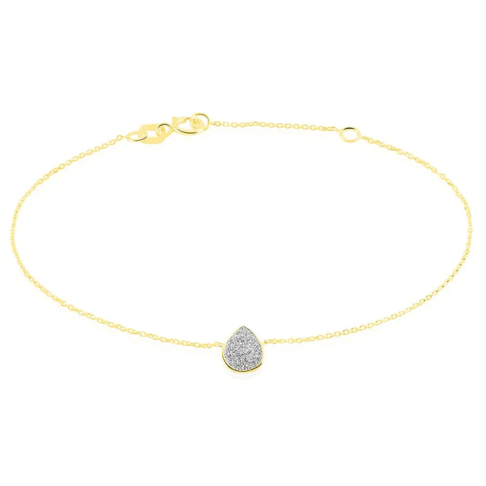 Bracelet Or Jaune 375/1000 Motif Goutte Glitter Silver Maille Jaseron 18cm
