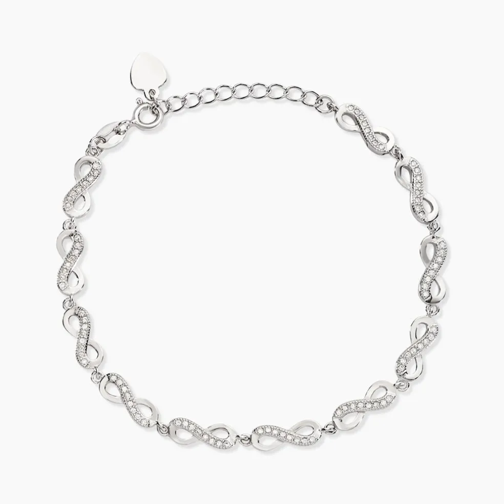 Bracelet Argent 925/1000 anka Chaine D’infinis Pavage Oxydes De Zirconium 19cm