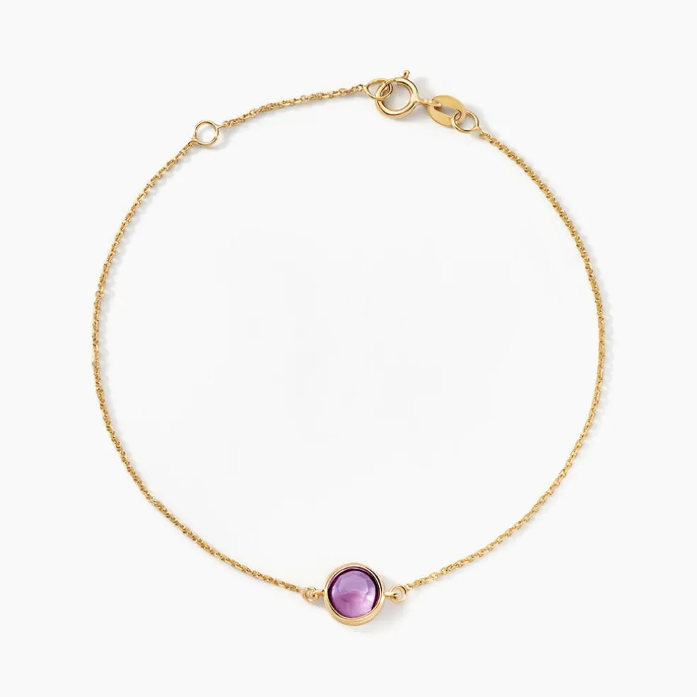 Bracelet Or Jaune 375/1000 Améthyste Serti Clos Maille Forçat 18cm