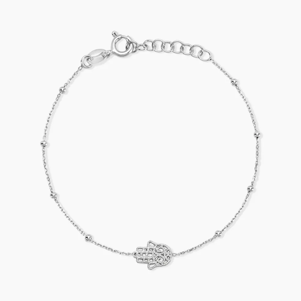 Bracelet Argent Blanc 925/1000 Main De Fatma Maille Boules 18cm