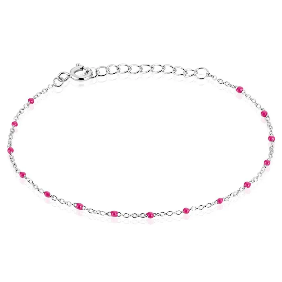 Bracelet Argent 925/1000 Email Rose 18.5cm