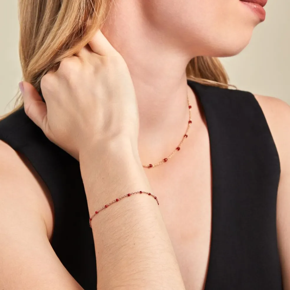 Bracelet Argent Rose 925/1000 Email Rouge 18.5cm