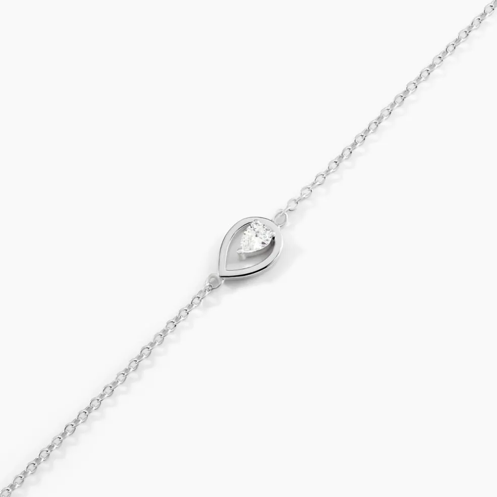 Bracelet Argent 925/1000 temusio Goutte Sertis Griffes 1 Oxyde De Zirconium Maille Forcat 18cm