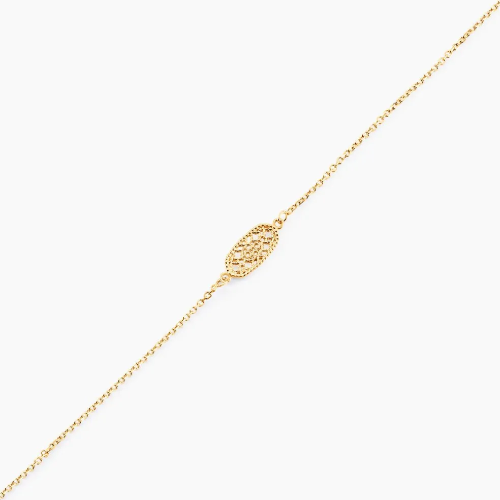 Bracelet Or Jaune 375/1000 Rectangle Filigrane Maille Jaseron 16+2cm