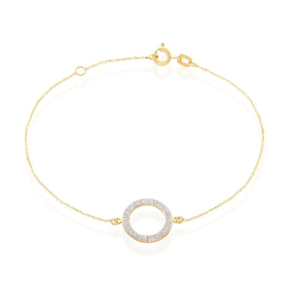 Bracelet Or Jaune 375/1000 Cercle Ajoure Glitter Argente Maille Jaseron 18cm
