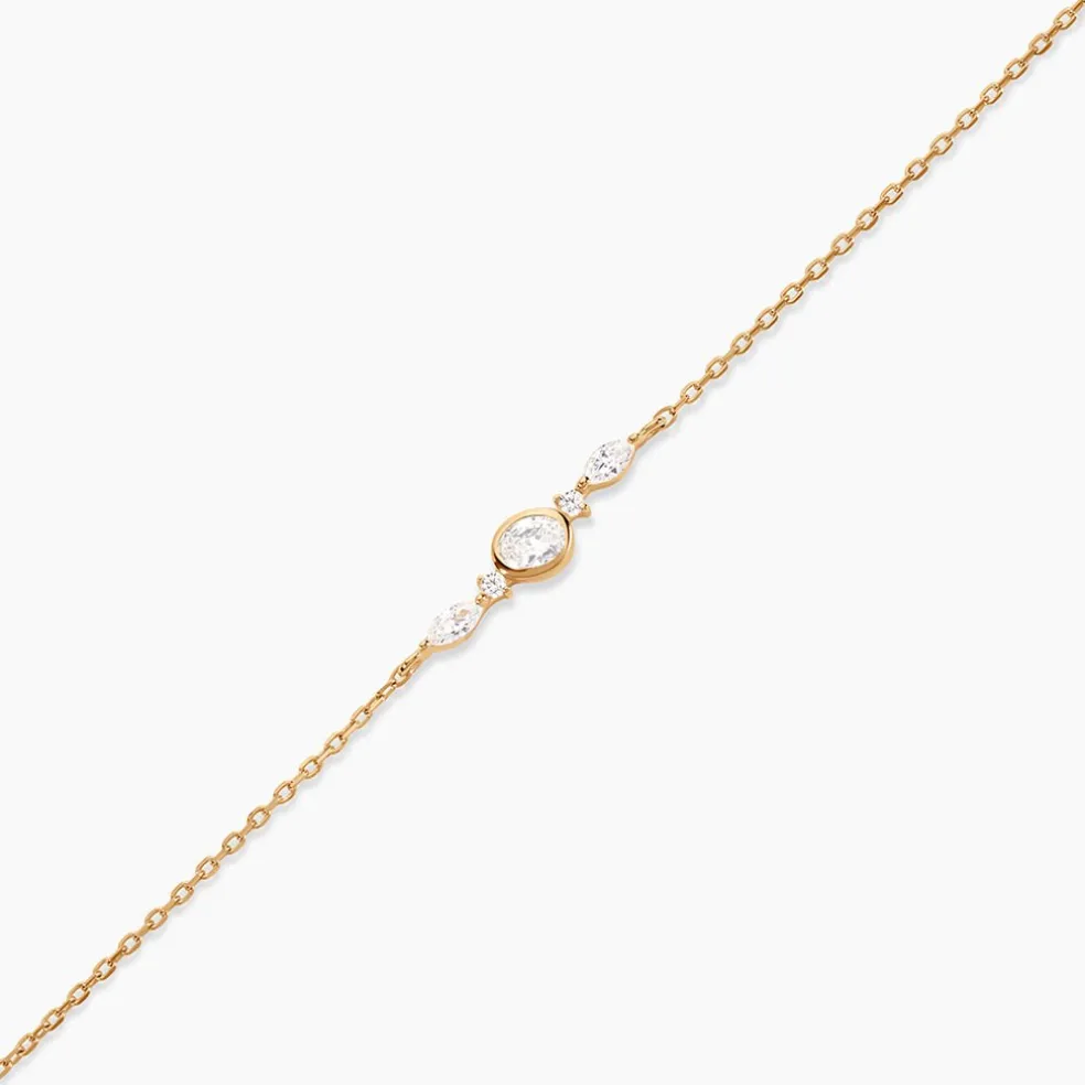 Bracelet Plaqué Or Jaune Oxyde De Zirconium Ovale Serti Clos Et Oxydes Navettes Maille Forcat 16+3Cm