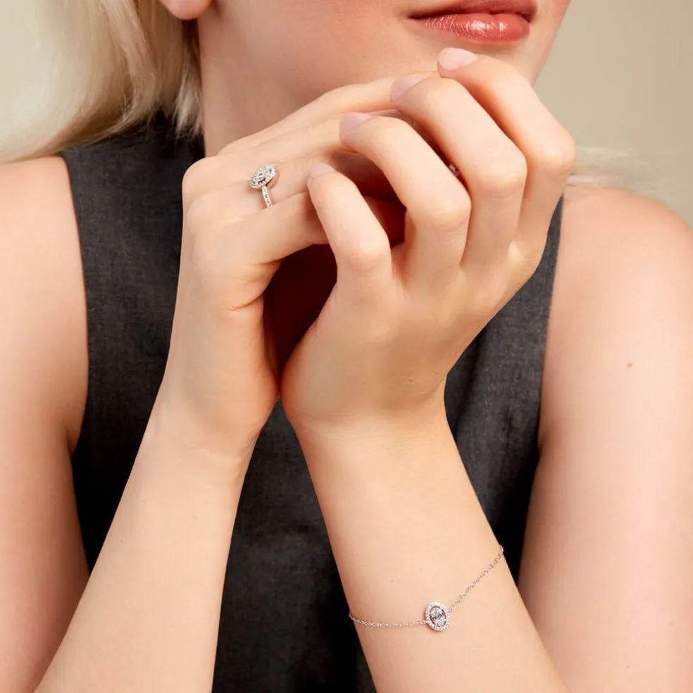 Bracelet Argent Blanc 925/1000 Forme Ovale Oxyde De Zirconium Taille Baguette Et Entourage Maille Forçat 16+3cm