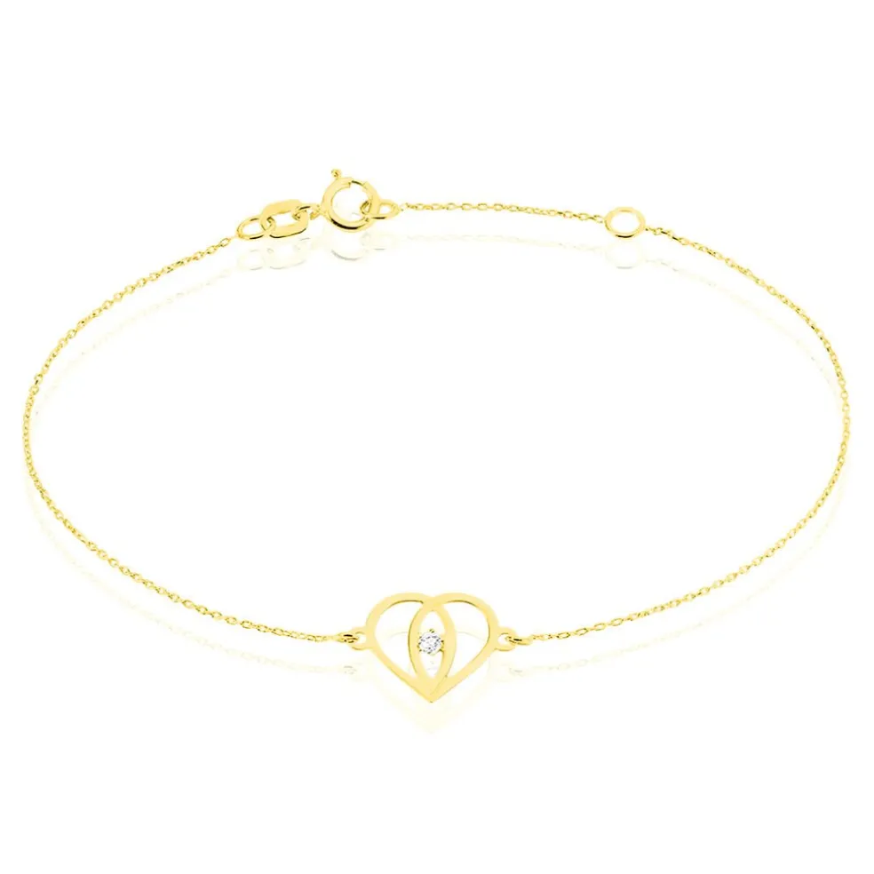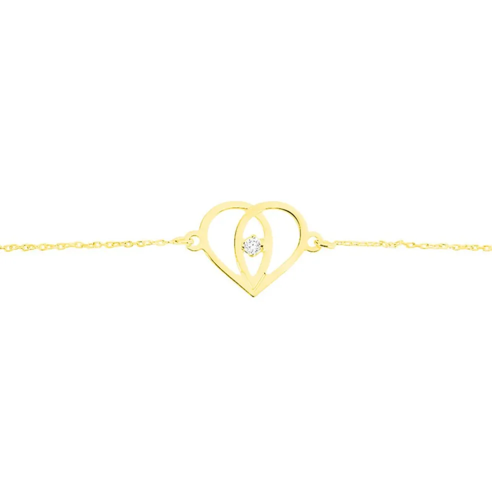 Bracelet Or Jaune 375/1000 C艙ur Croise Et Oxyde De Zirconium 18cm