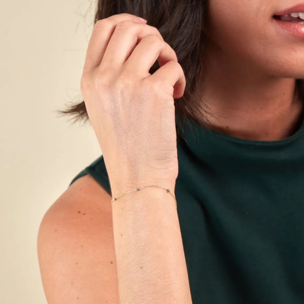 Bracelet Or Jaune 375/1000 Petites Boules Maille Forcat 16+2cm