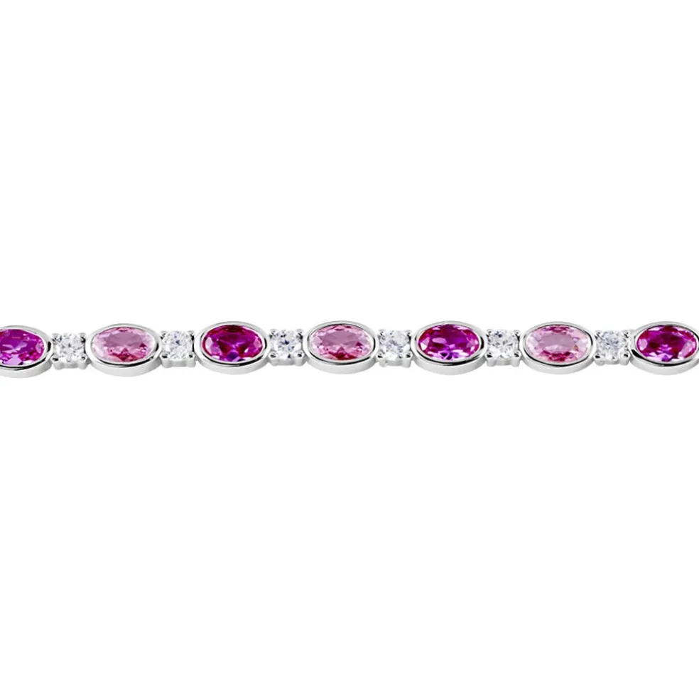 Bracelet Argent 925/1000 Oxydes De Zirconium Alternance Roses Sertis Clos 19cm