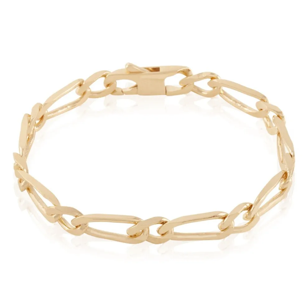 Bracelet Plaque Or Jaune Maille Alternee 1/1 7mm 21cm