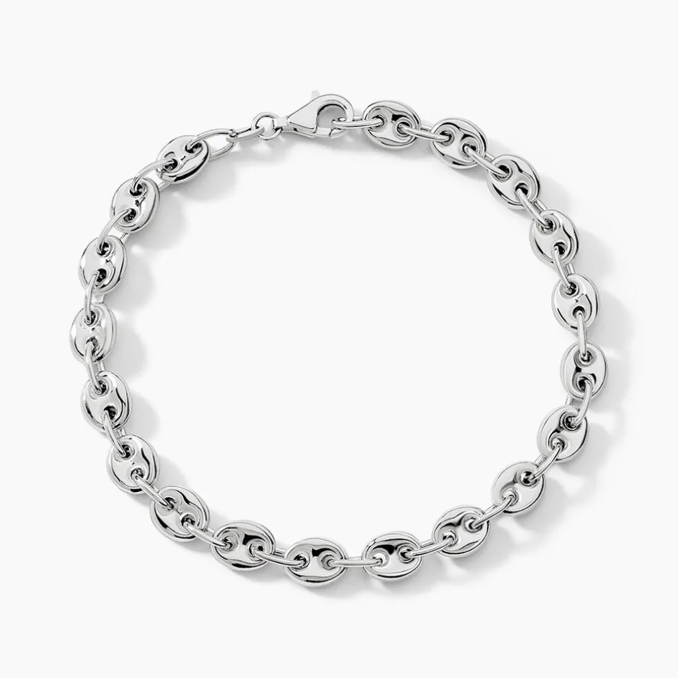 Bracelet Argent Blanc 925/1000 Maille Grain De Cafe Epaisseur 6mm 20cm