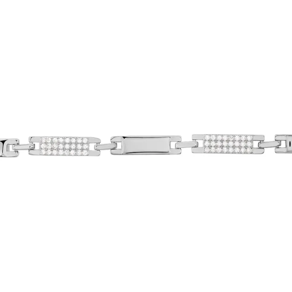 Bracelet Argent 925/1000 Plaques Lisse + Plaques Pavage Oxydes De Zirconium 18cm