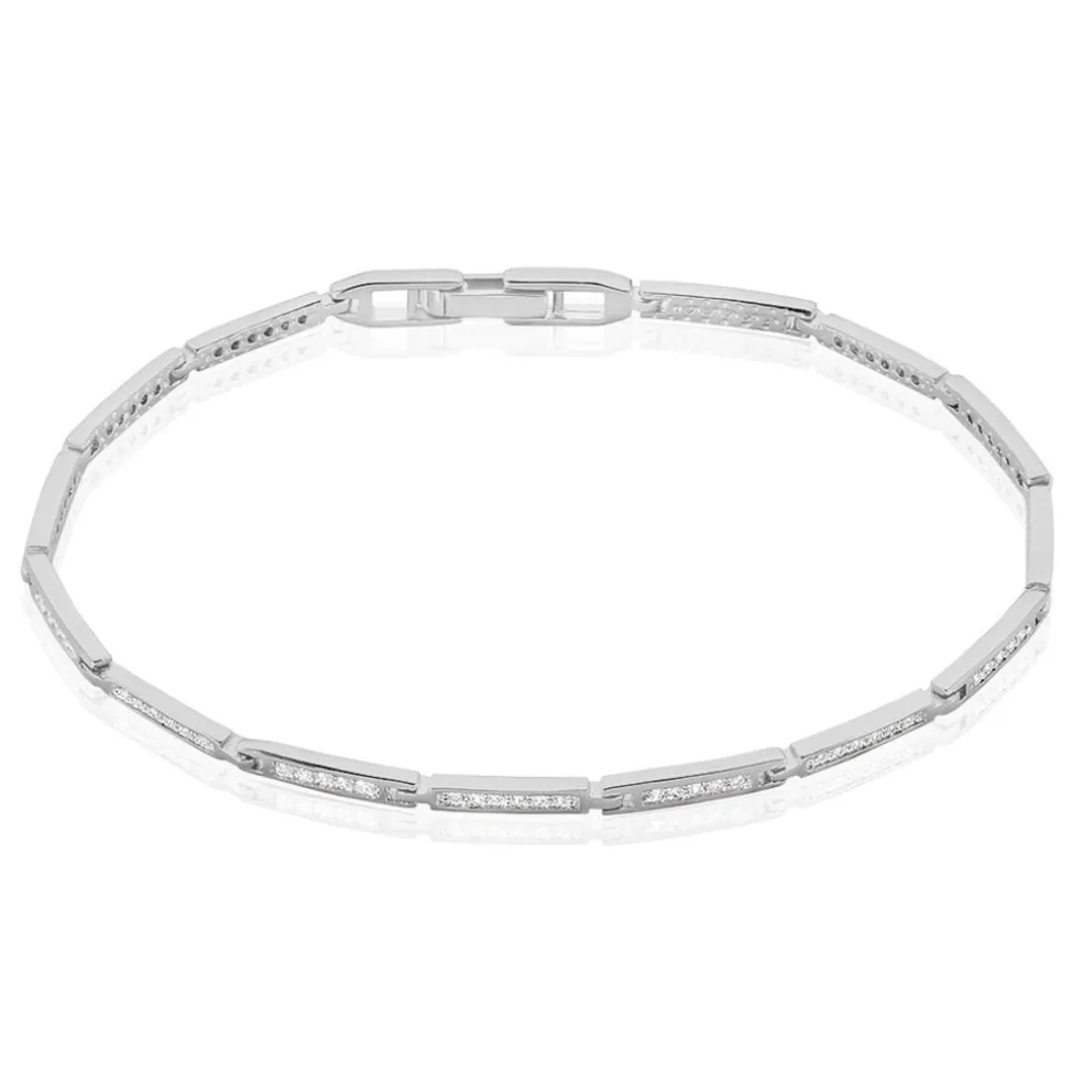 Bracelet Argent 925/1000 Plaques Pavage Oxydes De Zirconium 18cm