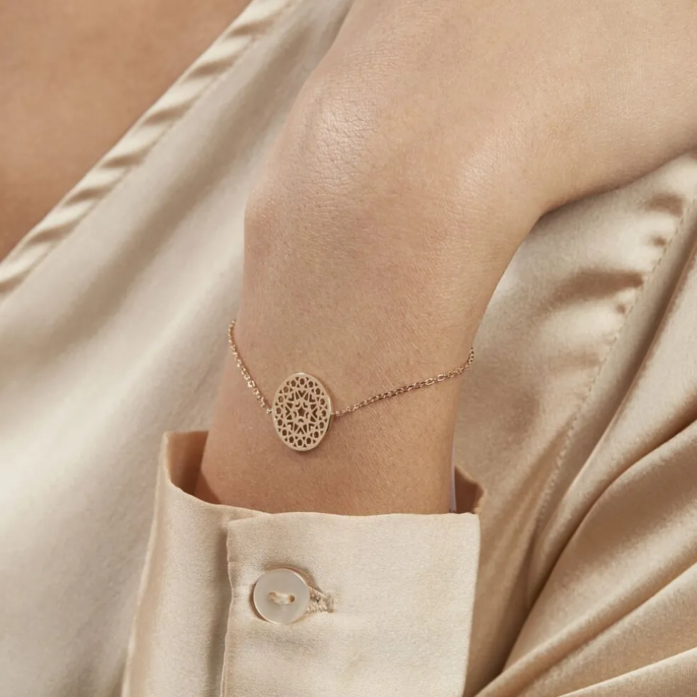 Bracelet Plaqué Or Jaune Rosace Ethnique 18cm