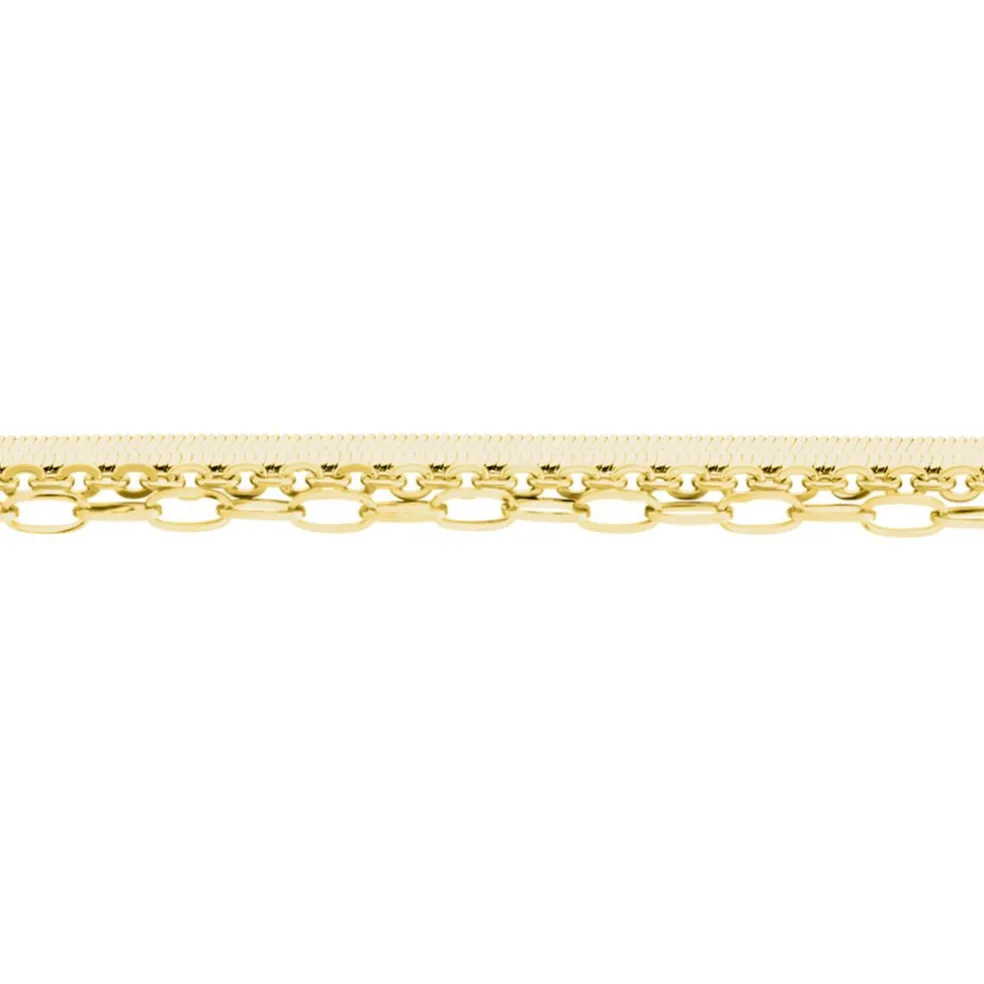 Bracelet Acier Inoxydable Jaune Triple Chaînes Miroir Cheval Et Forçat Ronde Largeur 7.4mm 19cm