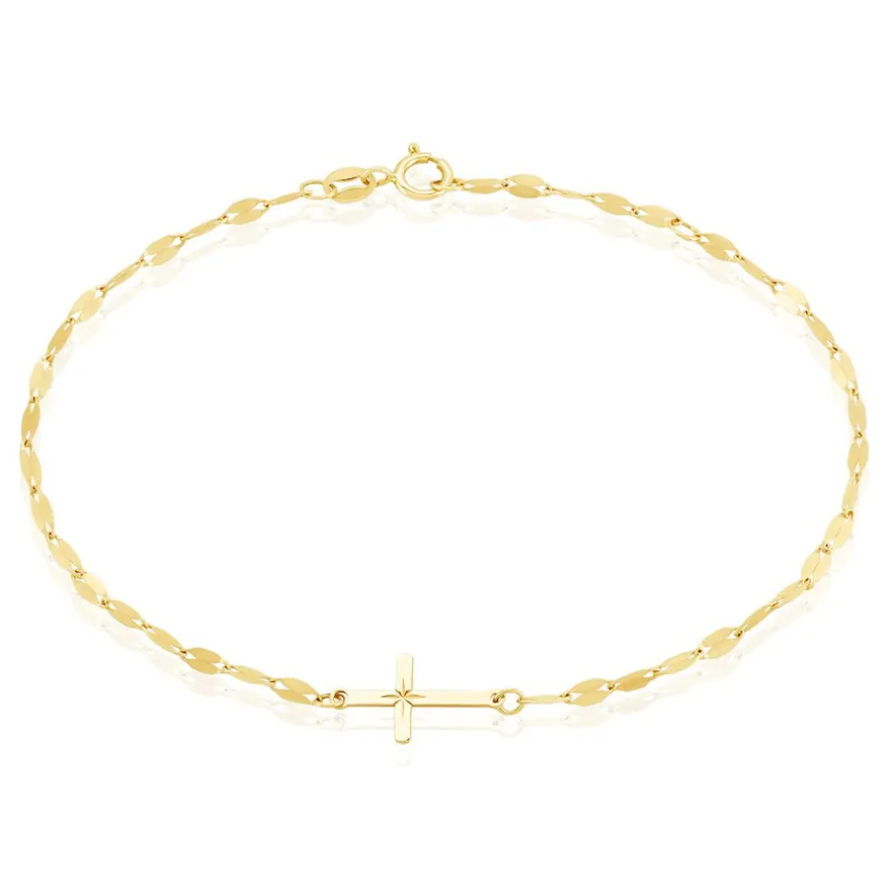 Bracelet Or Jaune 375/1000 Croix Avec Etoile Du Berger Maille Lumina 16+2cm