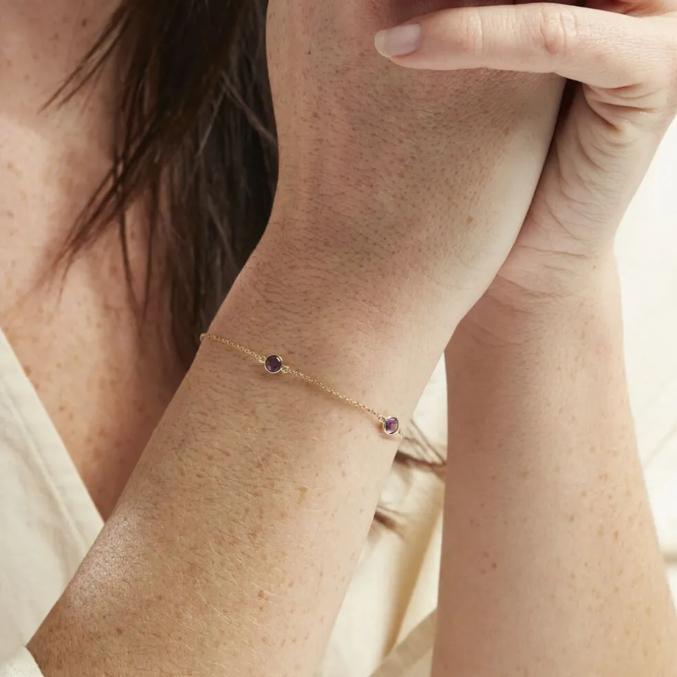 Bracelet Or Jaune 375/1000 3 Amethystes Violet Serti Clos 18cm