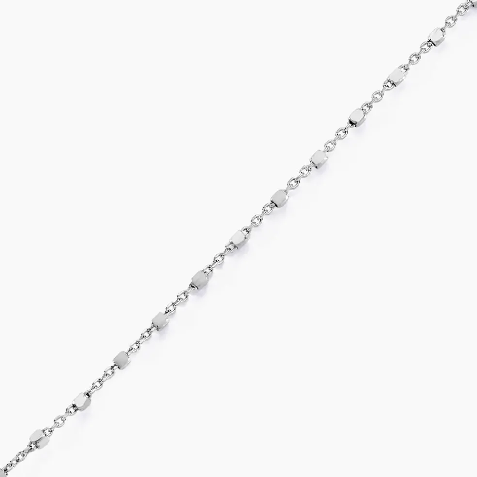 Bracelet Argent Blanc 925/1000 Maille Forcat + Petits Cubes 19.5cm