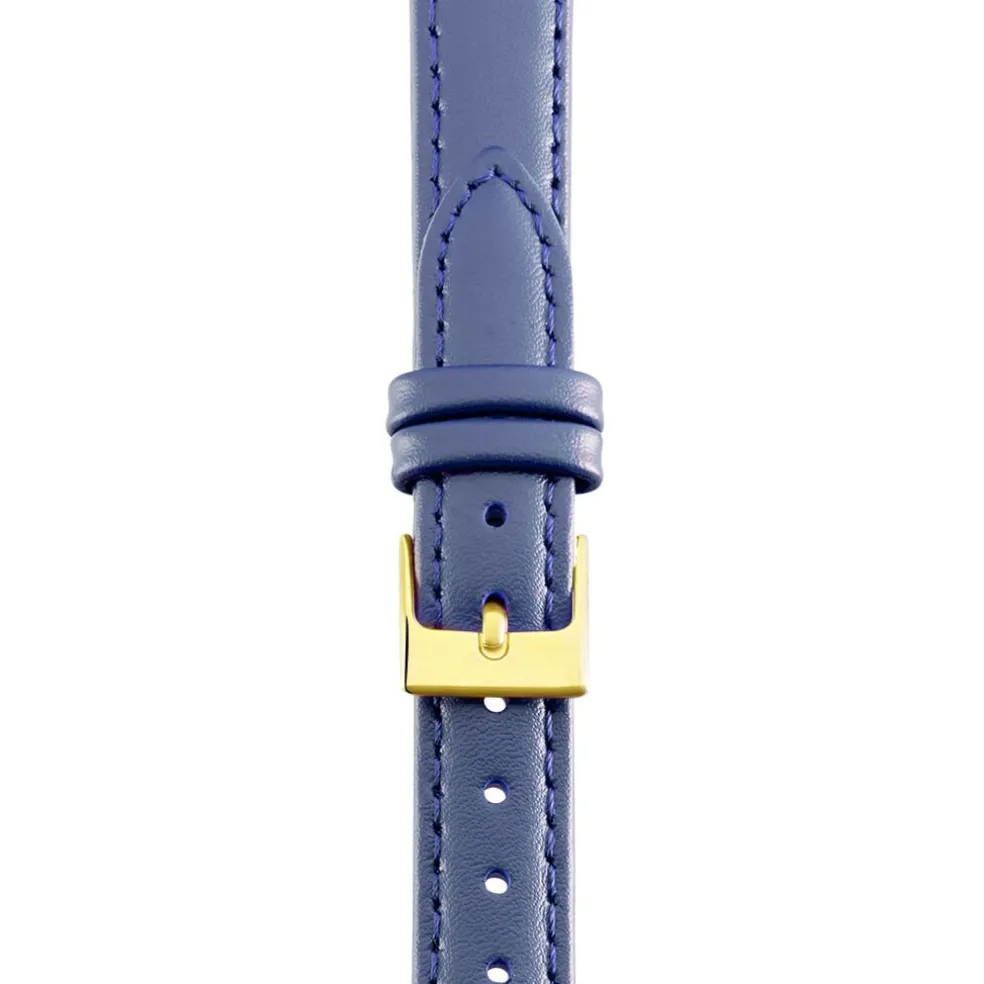 Bracelet De Montre Cuir Lisse Bleu Marine Boucle Doree 14mm