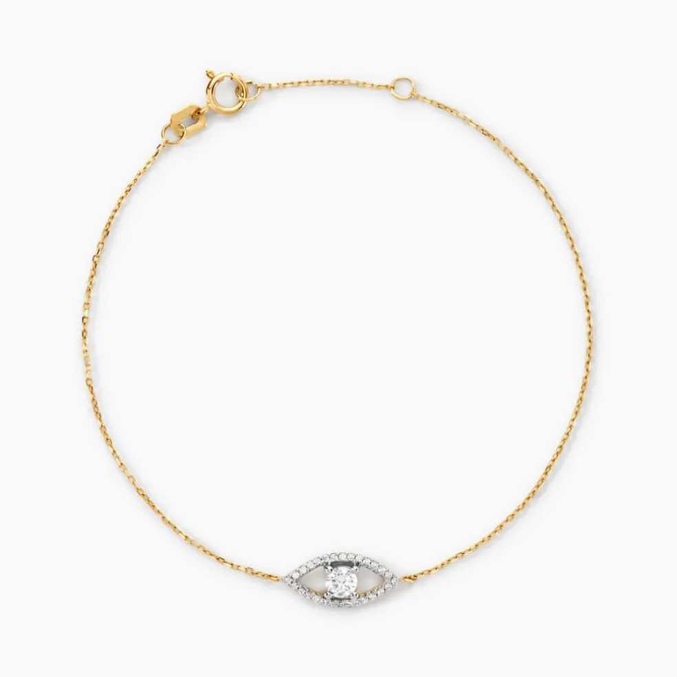 Bracelet Or Jaune 375/1000 艙il Oxyde De Zirconium Maille Forcat 16+2cm
