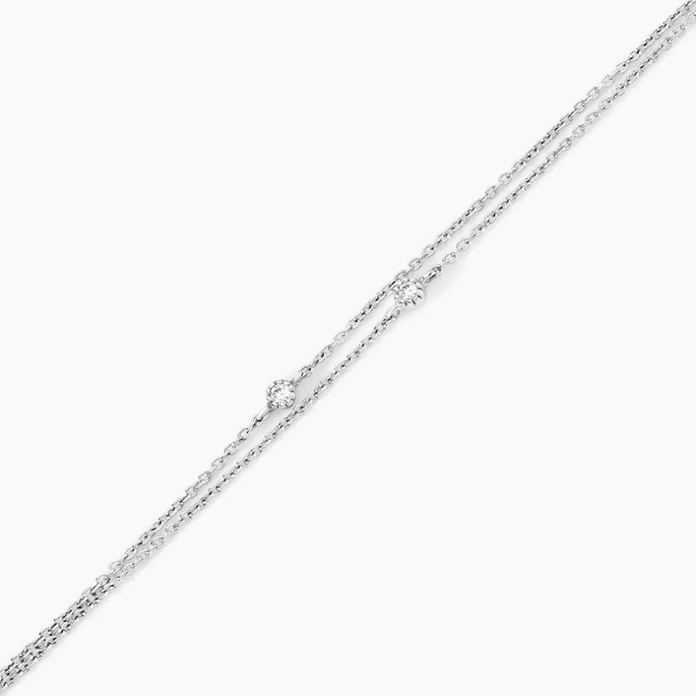 Bracelet Argent Blanc 925/1000 Oxydes De Zirconium Entourage Perlé Double Rang Maille Forcat 16+3Cm