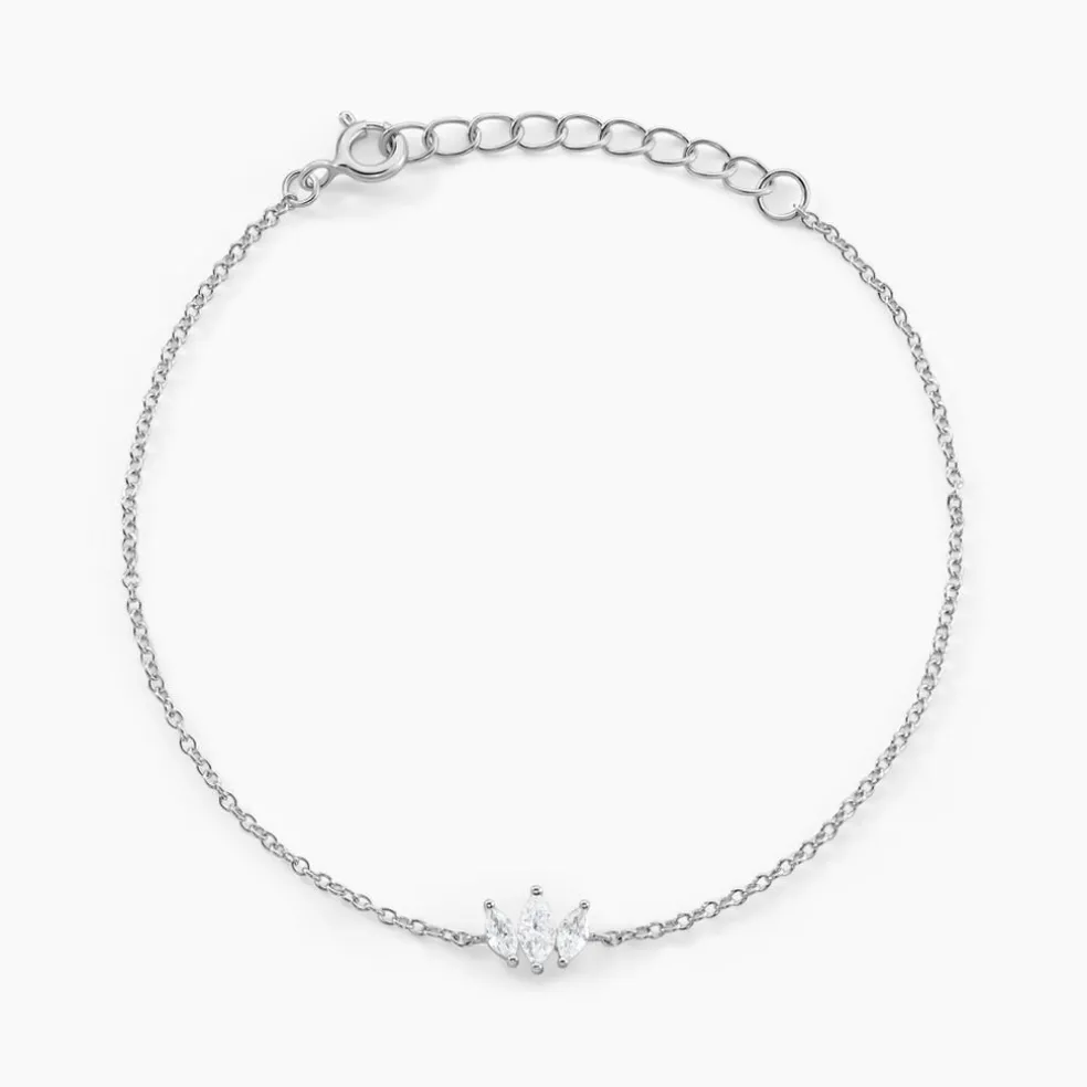 Bracelet Argent Blanc 925/1000 Navettes Oxydes De Zirconium Serti Griffes Maille Jaseron 16+3cm