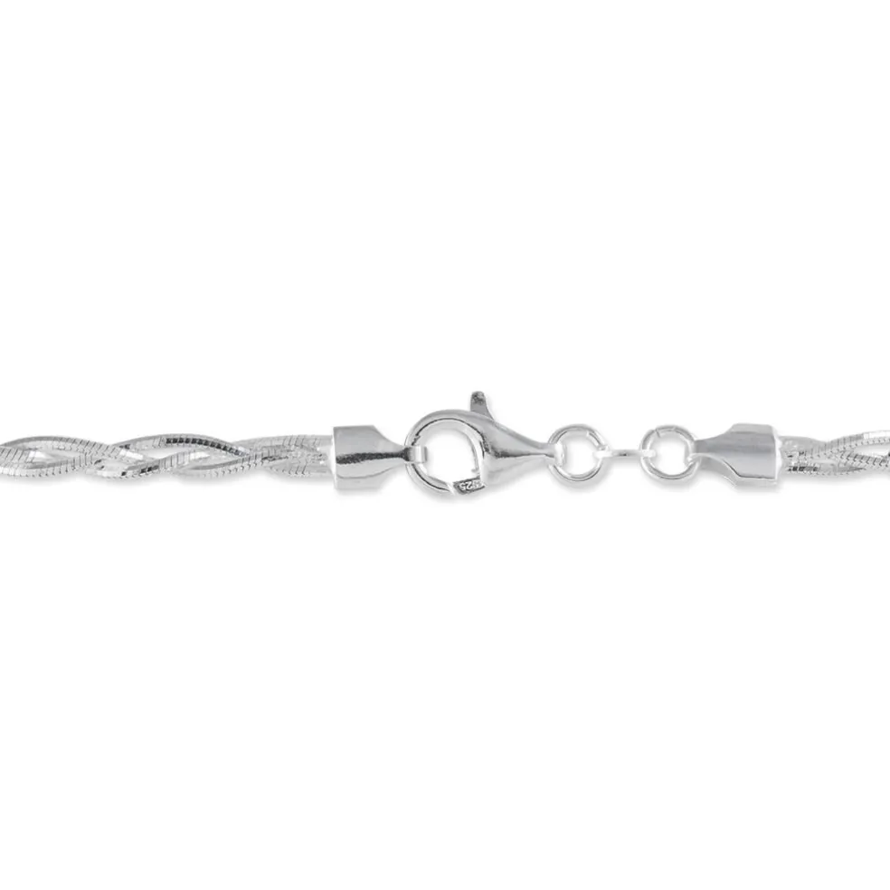 Bracelet Argent Blanc 925/1000 Maille Tresse 3 Fils Largeur 3mm 18cm
