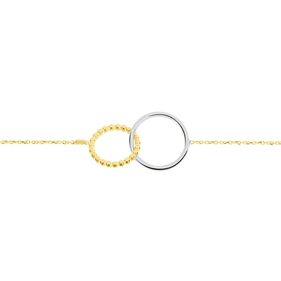Bracelet Or Bicolore 375/1000 Double Cercles Ajoures Effet Perle Et Lisse Maille Jaseron 18cm