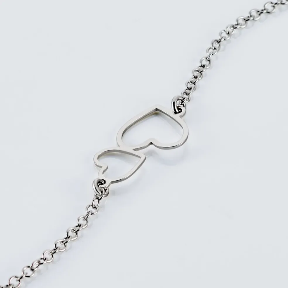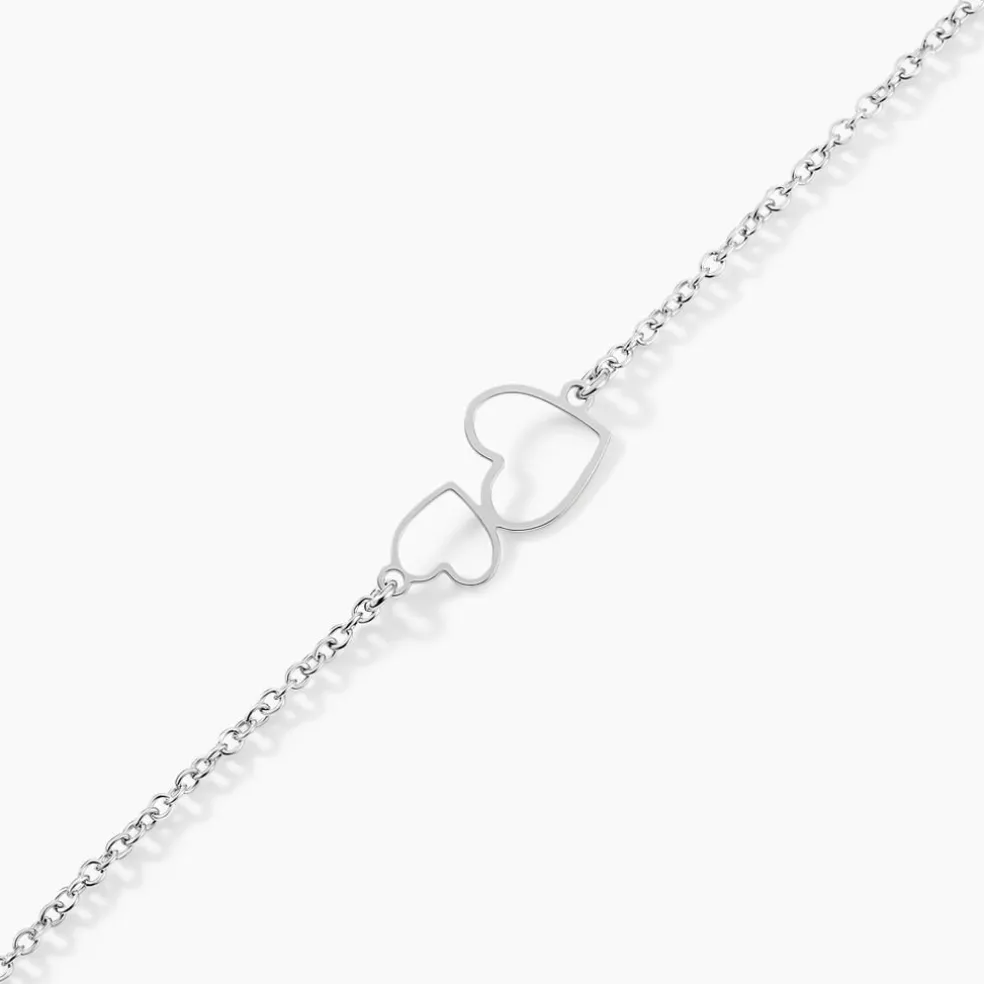 Bracelet Argent Blanc 925/1000 Double Coeurs Ajoures Maille Forcat 19cm