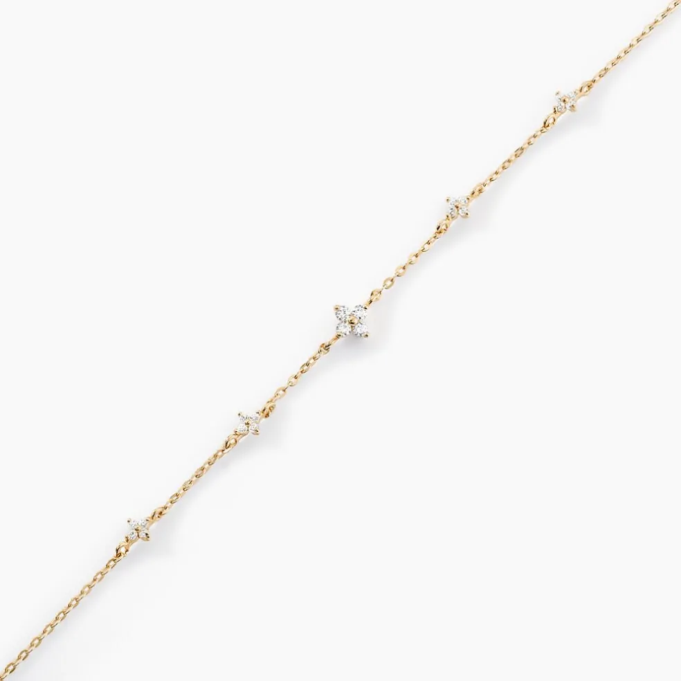 Bracelet Or Jaune 375/1000 Etoiles Oxyde De Zirconium Serti Griffes Maille Forcat 16+2cm