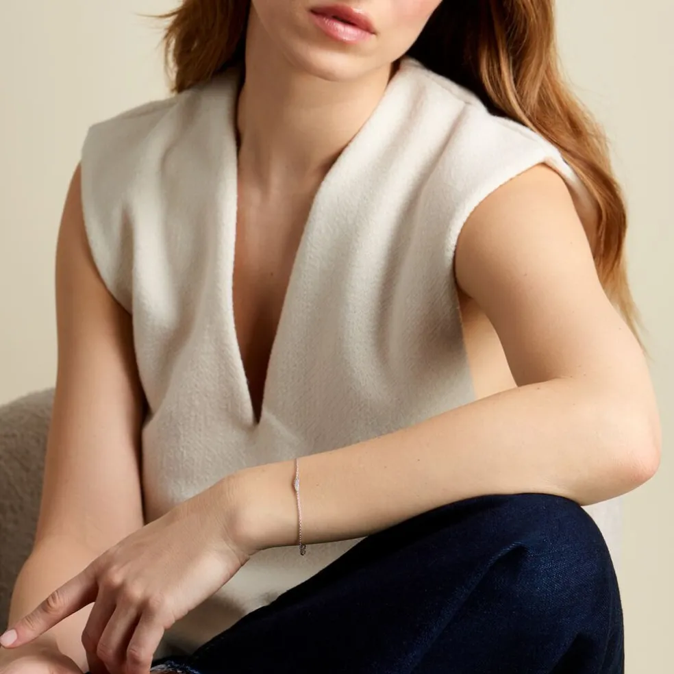 Bracelet Argent 925/1000 feath Plume Pavage Oxydes De Zirconium Maille Forcat 16+3cm