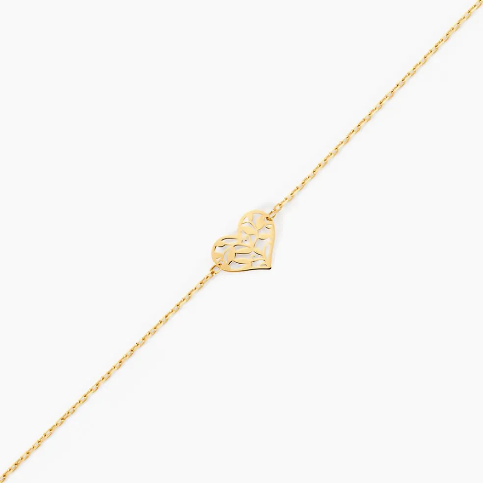 Bracelet Or Jaune 375/1000 C艙ur Arbre De Vie Maille Forcat 16+2Cm
