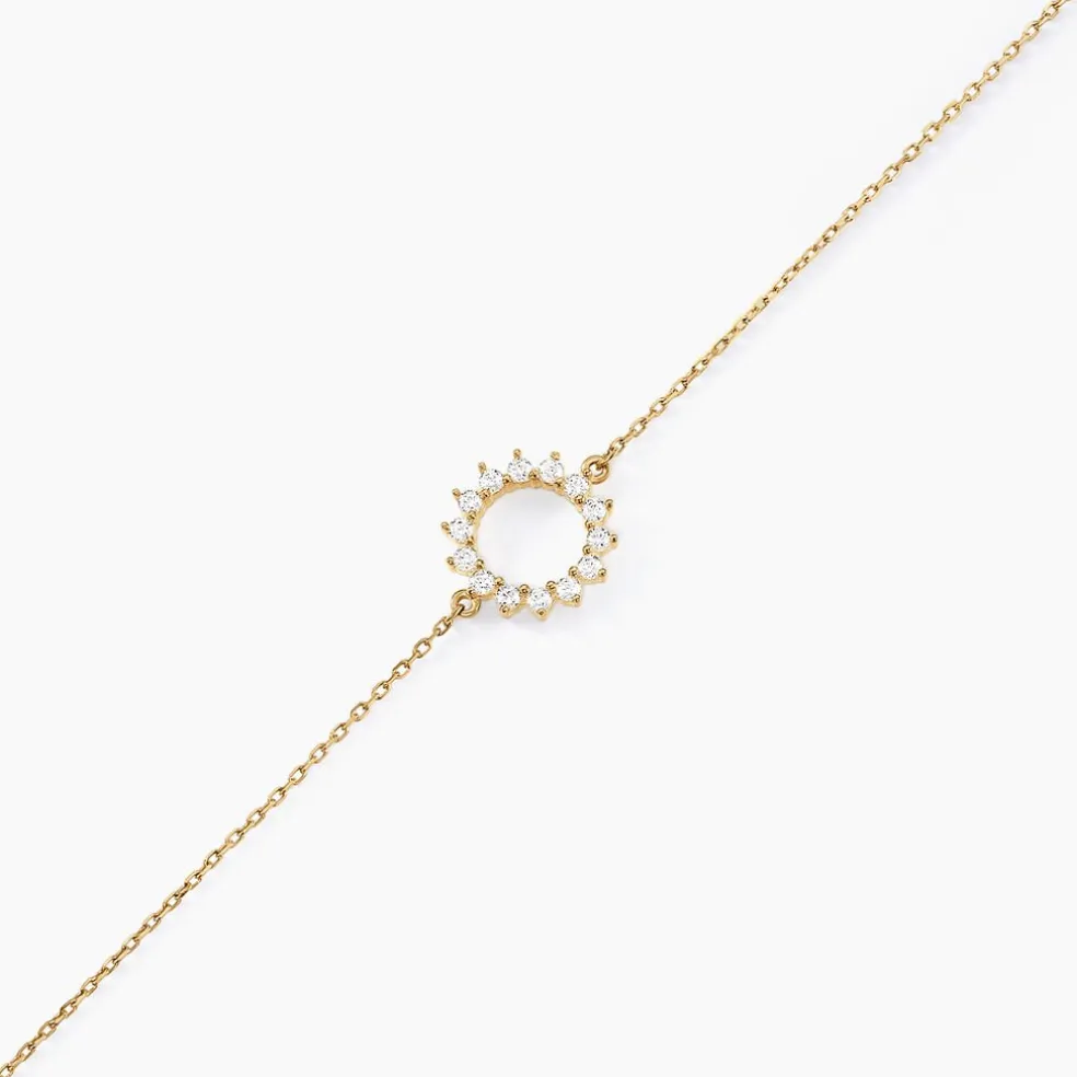 Bracelet Or Jaune 375/1000 Cercle Oxydes De Zirconium Blanc Serti 3 Griffes Maille Forçat 16+2cm