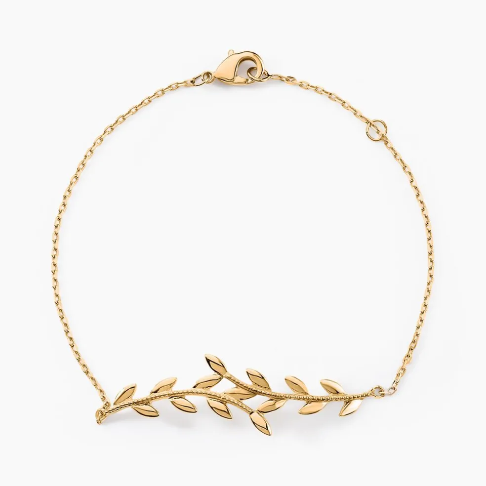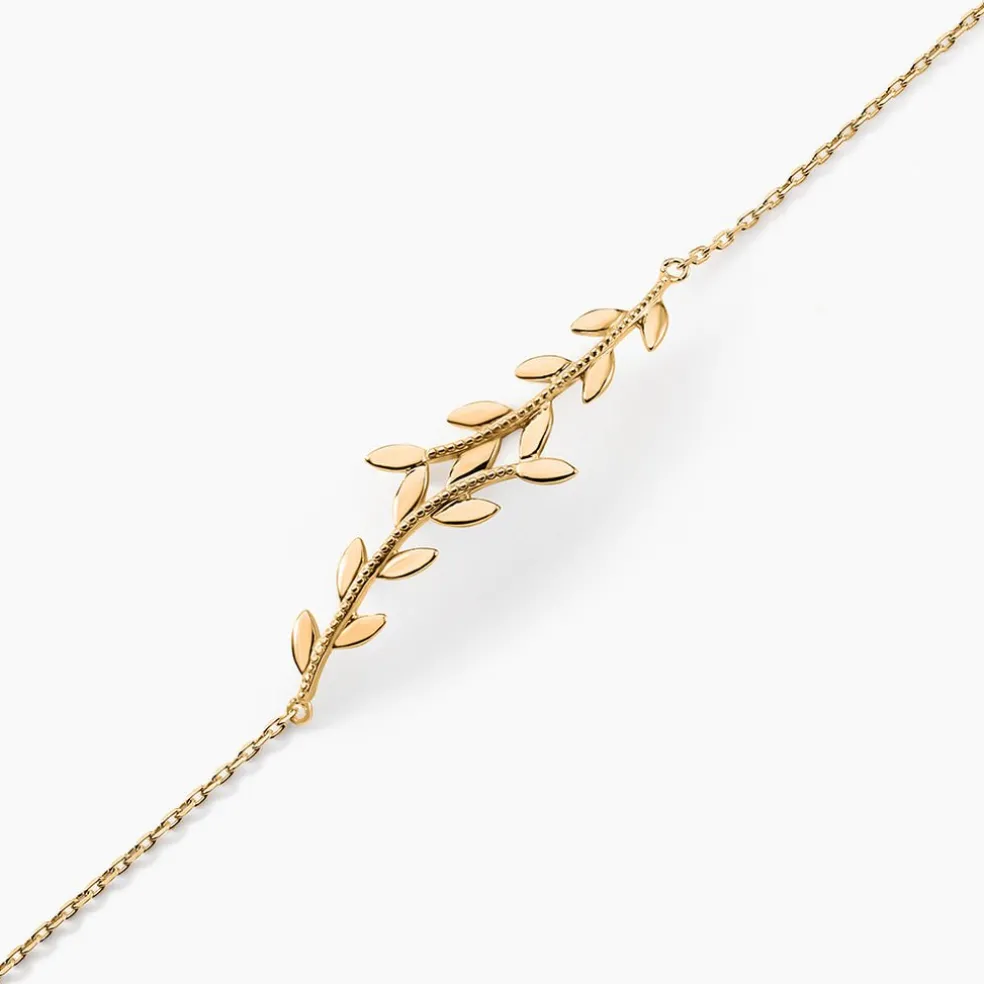 Bracelet Plaqué Or Jaune Forme Feuille 18cm