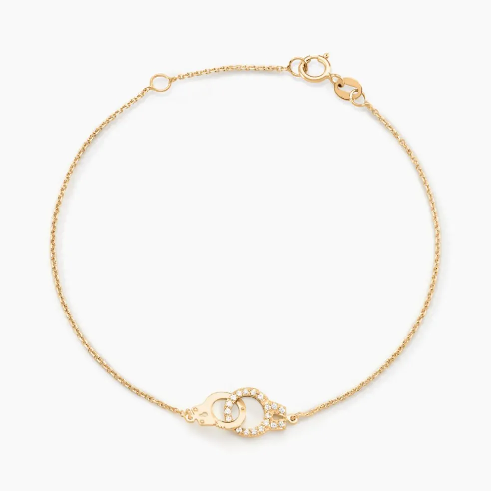 Bracelet Or Jaune 375/1000 Oxyde De Zirconium Blanc Serti Pavage 18cm