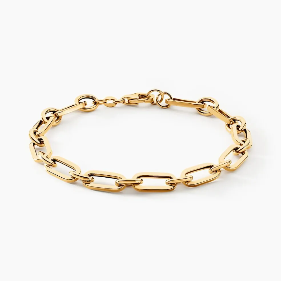 Bracelet Or Jaune 750/1000 Maille Fantaisie Largeur 8mm Maille Forcat 18cm
