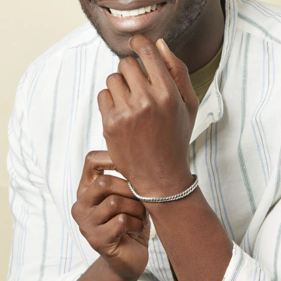 Bracelet Acier Inoxydable Blanc Maille Gourmette Largeur 6.1mm 21cm