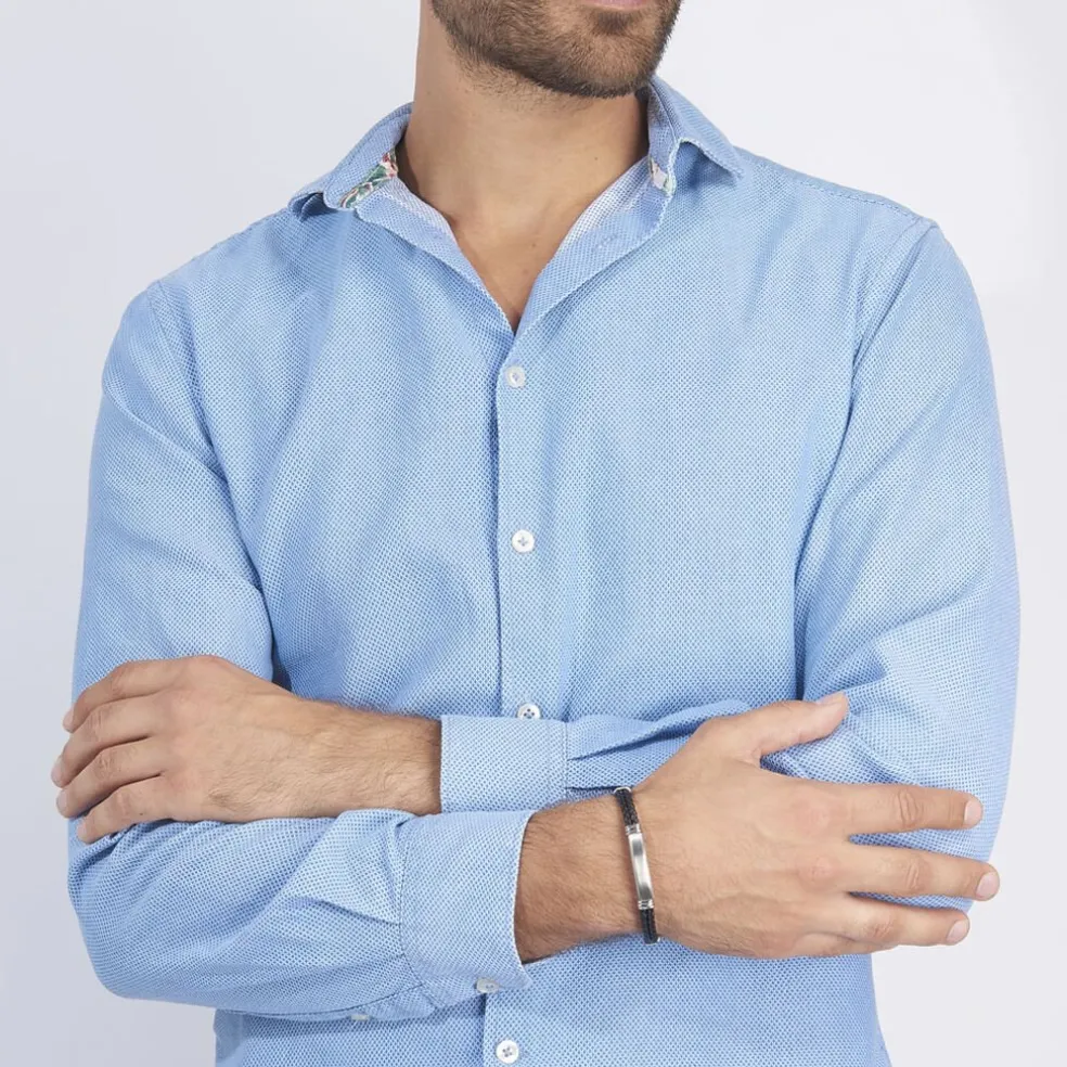Bracelet Acier Inoxydable Blanc Synthetique Noir Tressé Plaque Acier Inoxydable Blanc 21cm