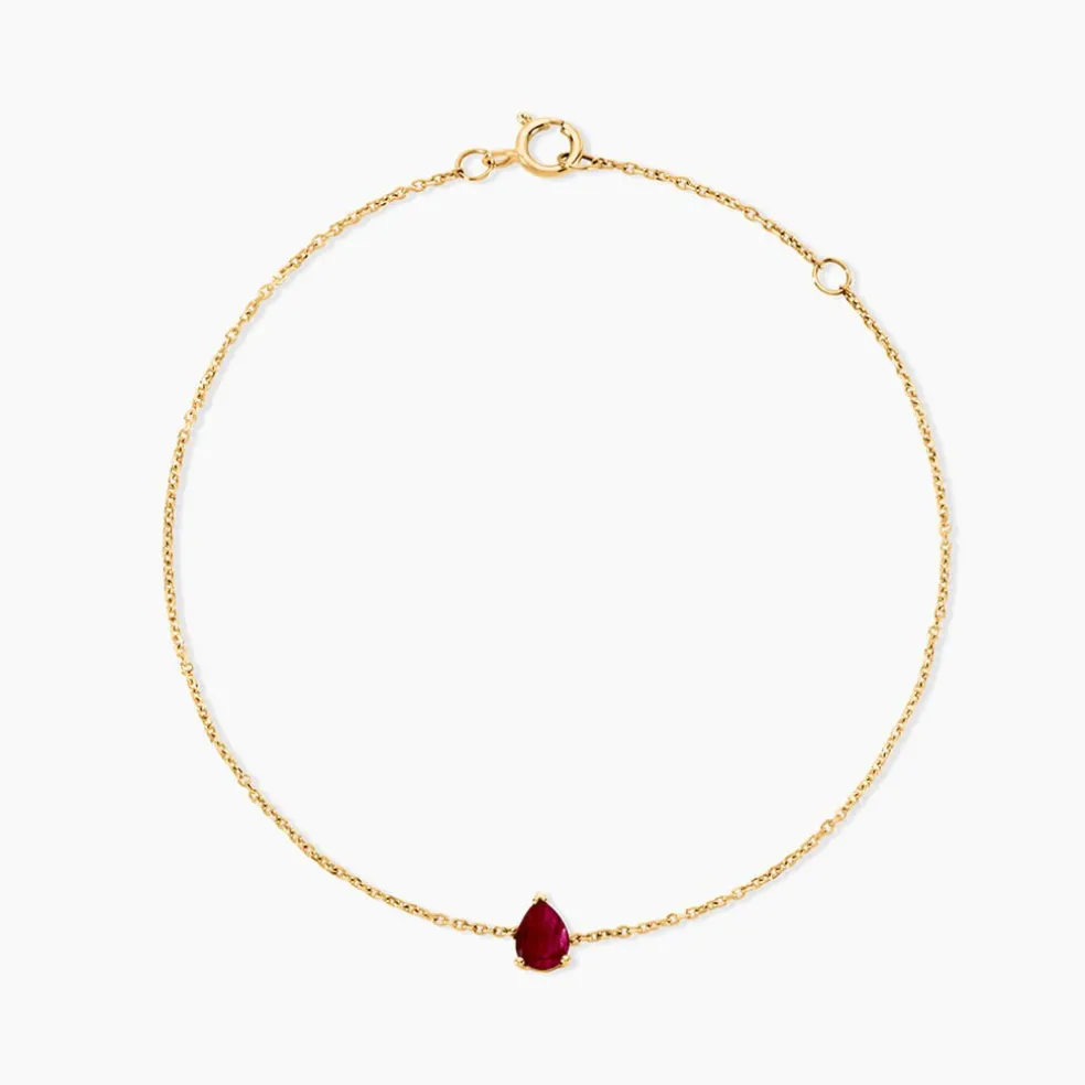 Bracelet Or Jaune 750/1000 Solitaire Rubis Poire 0,4Cts Serti 3 Griffes Maille Forcat 16+2Cm