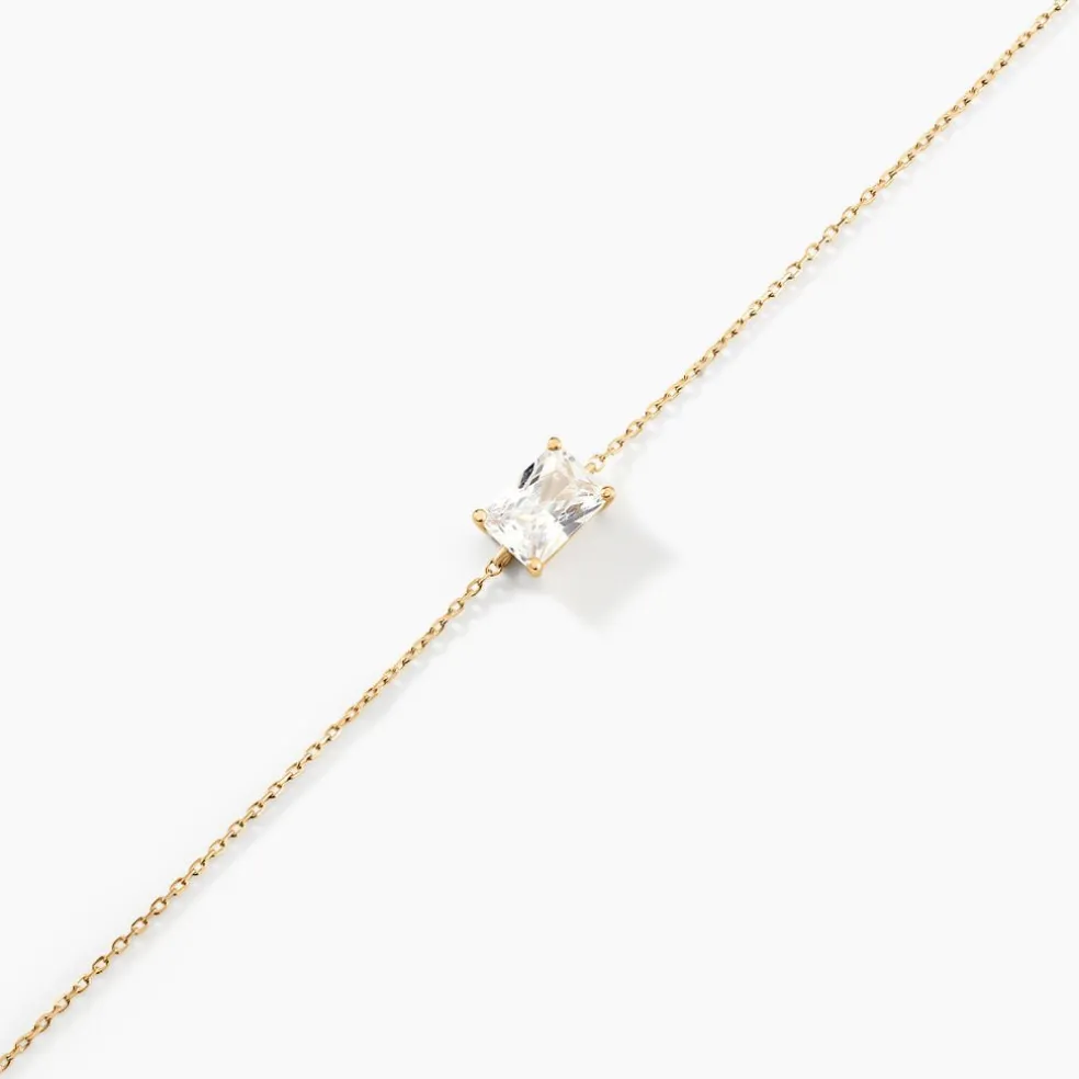 Bracelet Or Jaune 375/1000 Rectangle Oxyde De Zirconium Octogone Serti Griffes Maille Forçat 16+2cm