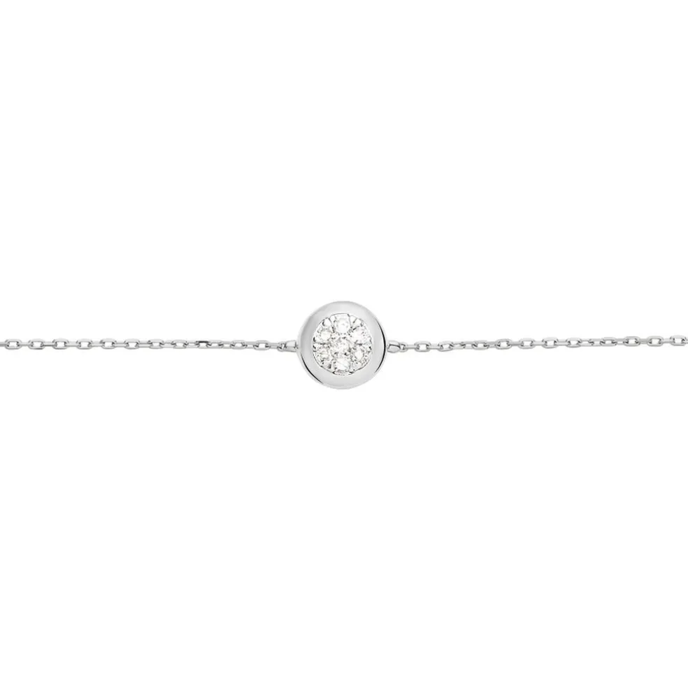 Bracelet Or Blanc 375/1000 Multipierres Diamants 0.09ct Serti Clos 18.5cm