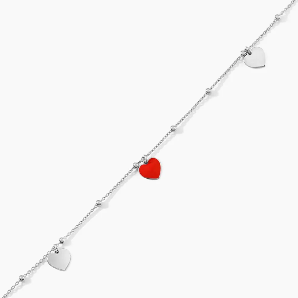 Bracelet Argent Blanc 925/1000 Pampilles C艙urs émail Rouge Maille Boules 16+3cm