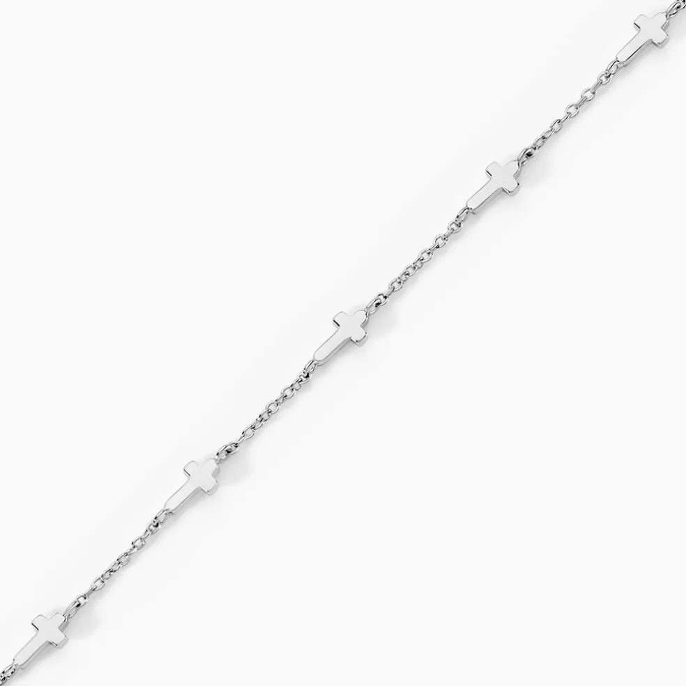 Bracelet Argent Blanc 925/1000 Multi Croix Maille Jaseron 16+3cm
