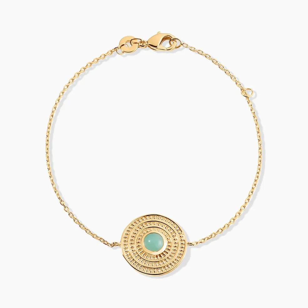 Bracelet Plaque Or Jaune Rond Aventurine Verte Maille Forcat 18cm